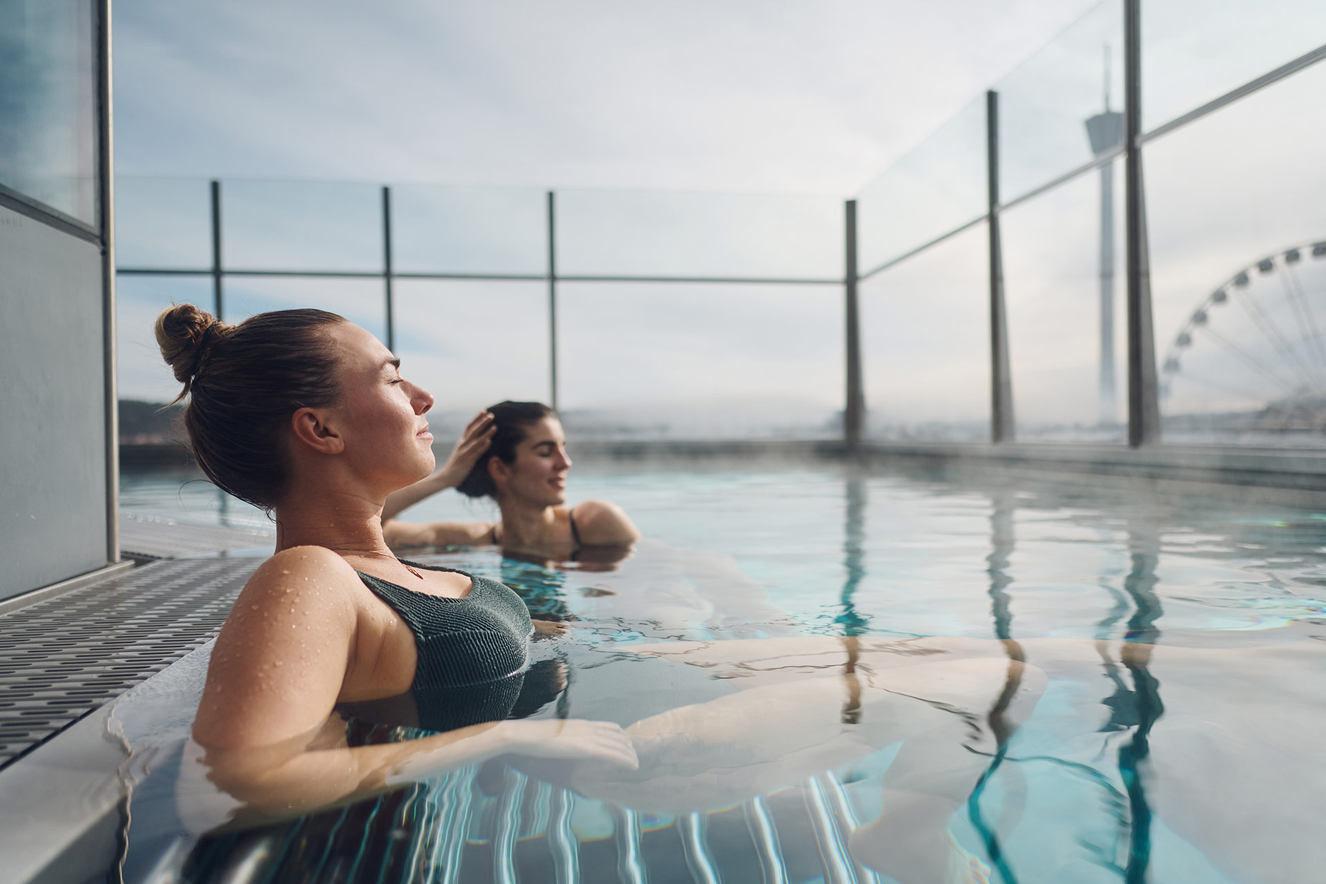 På spa får du tillgång till vår utanpåhängande champagnepool, Göteborgs högst belägna hamam, bastur, djungeldusch och en relaxavdelning där du kan koppla av och njuta av utsikten.